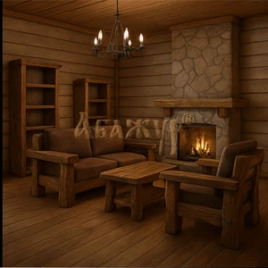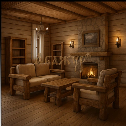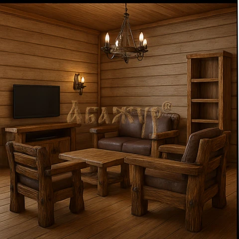 В комплект входят диваны, кресла и журнальный стол с массивными опорами и утолщёнными кромками. Конструкция рассчитана на длительную эксплуатацию и сохраняет устойчивость даже при активном использовании. Гостиная гармонично вписывается в интерьеры с камином, в деревянные дома, охотничьи домики, базы отдыха и гостиницы, создавая атмосферу уюта, спокойствия и природной основательности.