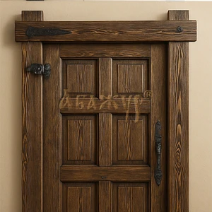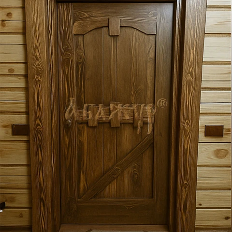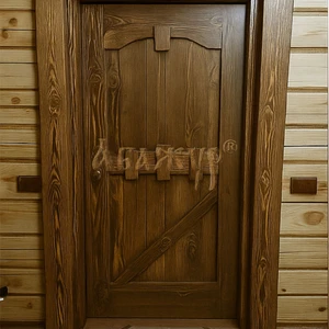 Каждая дверь изготавливается из отборной сосны, проходит браширование и тонировку «под старину», что подчёркивает годовые кольца и создаёт эффект старого добротного дерева. Такие двери подходят для частных домов, бань, коттеджей, гостиниц и интерьеров в стилях рустик, шале, кантри и охотничий дом. Возможны разные размеры, открывание и комплектация под заказ.