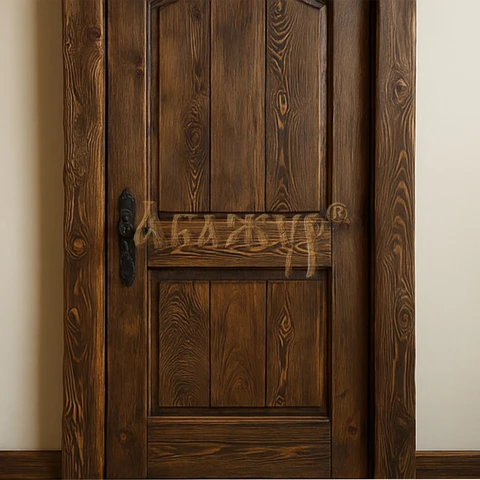 Двери из массива сосны под старину — это коллекция деревенских и таёжных моделей, выполненных вручную с сохранением природной текстуры древесины. В одном товарном предложении представлены разные варианты исполнения: глухие двери, двери с окнами и стеклом, модели с диагональным раскосом, филёнками, декоративной резьбой и усиленными коробами из массива.