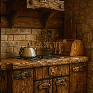Массивные фасады, простые формы и ощущение ручной плотницкой работы делают эту кухню идеальной для загородных домов, шале, охотничьих домиков и интерьеров с характером.