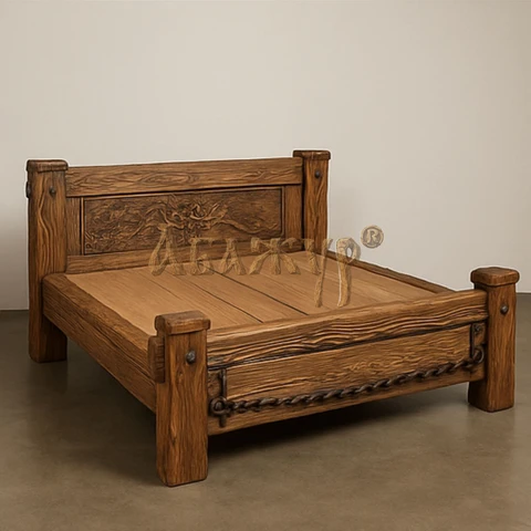 Кровати отличаются массивностью, устойчивостью и продуманными пропорциями. Подходят для спален в загородных домах, шале, гостиницах, гостевых домах и интерьерах в стиле под старину, лофт или эклектика.