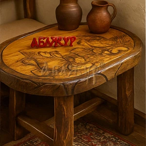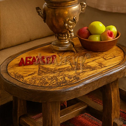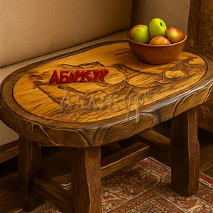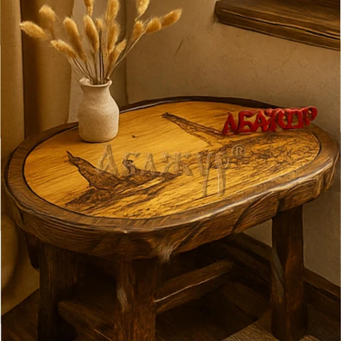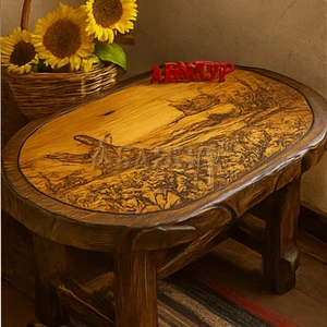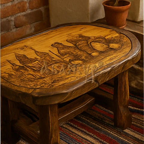 Журнальные столы изготавливаются из массива сибирской сосны и служат акцентным элементом интерьера. Основной декоративный элемент — резная столешница, выполненная по массиву и подчёркивающая глубину и пластику натурального дерева.