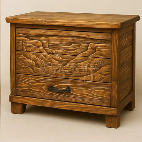 Древесина проходит глубокую брашировку: мягкие летние волокна выбираются, а плотные зимние кольца остаются рельефными. Далее применяется сложная технология окрашивания — углубления затемняются, выступающие участки остаются светлее. Финальная ручная доработка позволяет подчеркнуть каждый сучок, годичные кольца и естественный рисунок древесины.